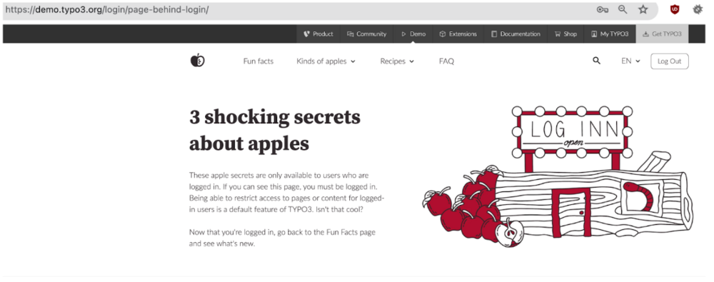 An important aspect of TYPO3 personalization is the ability to differentiate content based on user login status. For anonymous visitors: Display general information along with calls to action encouraging them to sign up or log in. Example: Visitors who aren't logged in see more general content but are prompted to subscribe or login to access premium features.