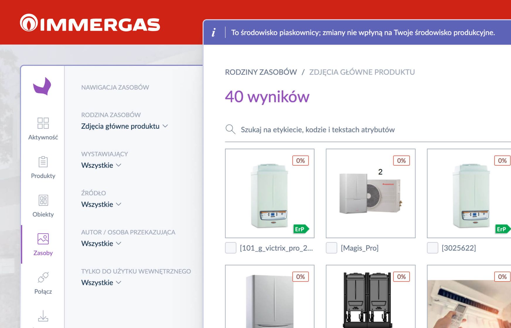 Immergas needed to establish a central source for product data acquired partially from the company's Italian headquarters. The data was intended for the website, Salesforce, and dedicated systems: an application supporting the loyalty program and a service management application. The client's goal was to verify data accurately before publication and automate content enrichment. The PIM system also had to function as a Digital Asset Manager (DAM) by utilizing Akeneo's Asset Manager capabilities.