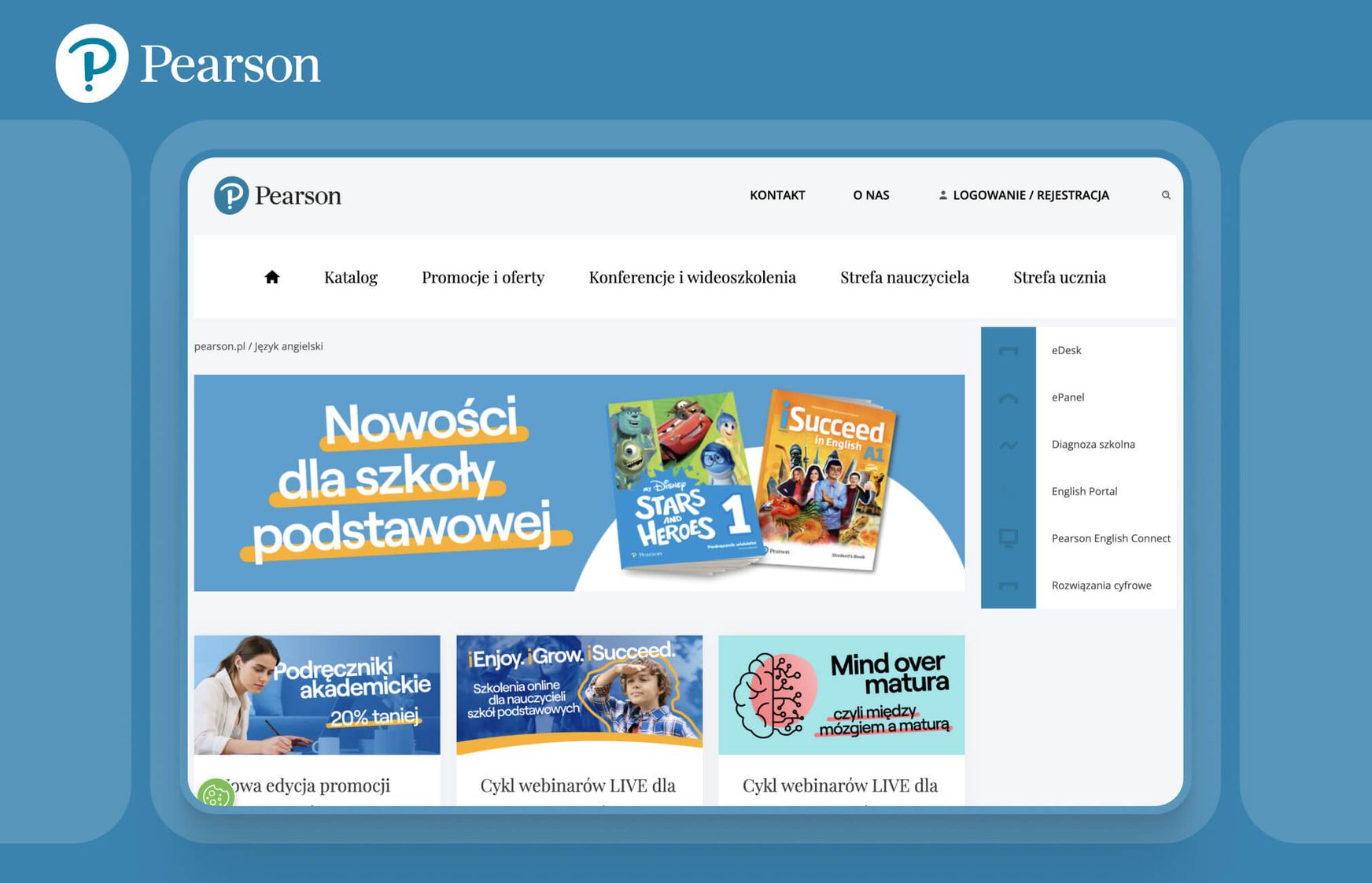 Wir haben individuelle Anmeldepfade für zwei Gruppen von Nutzern geschaffen: Lehrer und Schüler, wobei jede Gruppe Zugang zu unterschiedlichen Materialien hat. Wir haben einen einzigen Anmeldeprozess implementiert, um die Benutzerfreundlichkeit zu verbessern und den Benutzern einen reibungslosen Wechsel zwischen den verschiedenen von Pearson angebotenen Apps zu ermöglichen. Registrierte Benutzer können sich auch für verschiedene von Pearson organisierte Veranstaltungen anmelden. Die wichtigsten Details dieser Veranstaltungen (Teilnehmerliste, Programm) können vom Pearson-Team direkt in seinem CMS verwaltet werden.