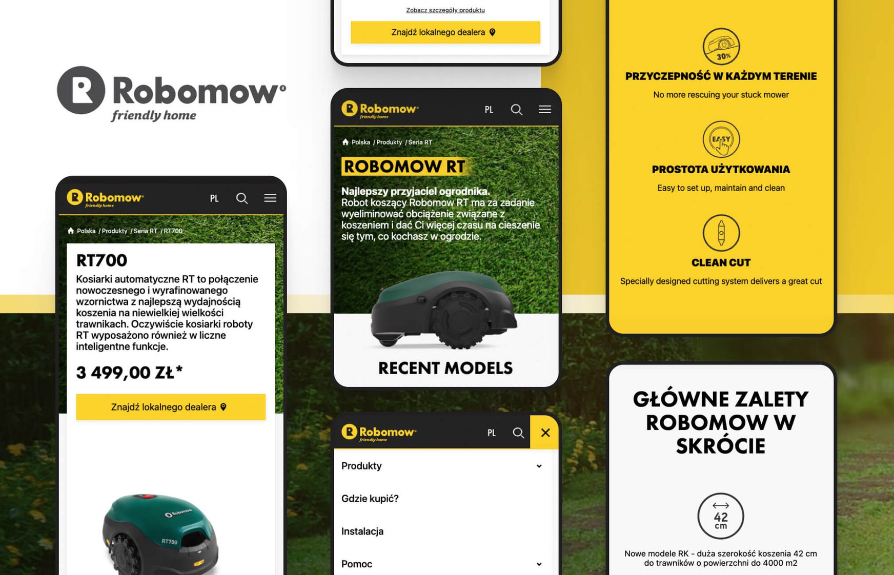 Robomow(R) to marka należąca do MTD Products AG. MTD Products AG pełni rolę spółki zależnej będącej w pełni własnością amerykańskiego przedsiębiorstwa o długiej tradycji MTD Products Inc., którego produkty do pielęgnacji ogrodu i trawnika sprzedaje we wszystkich krajach Europy. Europejska centrala firmy znajduje się w Saarbrücken w Niemczech. Robomow(R) zajmuje się produkcją wyspecjalizowanych robotów koszących, które stanowią alternatywę dla tradycyjnych, manualnych kosiarek. W ofercie Robomow(R) znajdziemy różne kategorie i modele urządzeń, co wynika ze specyficznych potrzeb właścicieli trawników. Z firmą rozpoczęliśmy współpracę w 2020 roku. Klient zgłosił się do nas z problemem braku globalnej strony internetowej zarządzanej z jednego panelu administratora, ponieważ do tej pory strony lokalne utrzymywane były na kilku platformach (np. Wordpress czy Shopify). Oznaczało to przede wszystkim brak spójności w komunikacji międzynarodowej, a także trudności z edycją i aktualizacją dla zagranicznych dealerów, co z kolei wiązało się z koniecznością szkolenia administratorów z obsługi wielu platform.