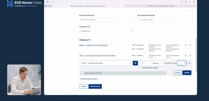 5 min czytania -  W tym specjalnym, demonstracyjnym odcinku B2B Master Class Tomasz Grzemski, CEO Macopedii, wciela się w rolę eksperta i samodzielnie prezentuje na żywo działanie nowoczesnego panelu handlowca (na przykładzie systemu OroCommerce). Krok po kroku wyjaśnia, dlaczego "zwykły" e-commerce B2C nie sprawdzi się w hurcie, i udowadnia, że platforma B2B to w rzeczywistości potężny system CRM. Z tego materiału dowiesz się, jak cyfryzacja wspiera codzienną pracę przedstawicieli handlowych – od kwalifikacji leadów i ofertowania, po zarządzanie bazą użytkowników i składanie zamówień w imieniu klienta.