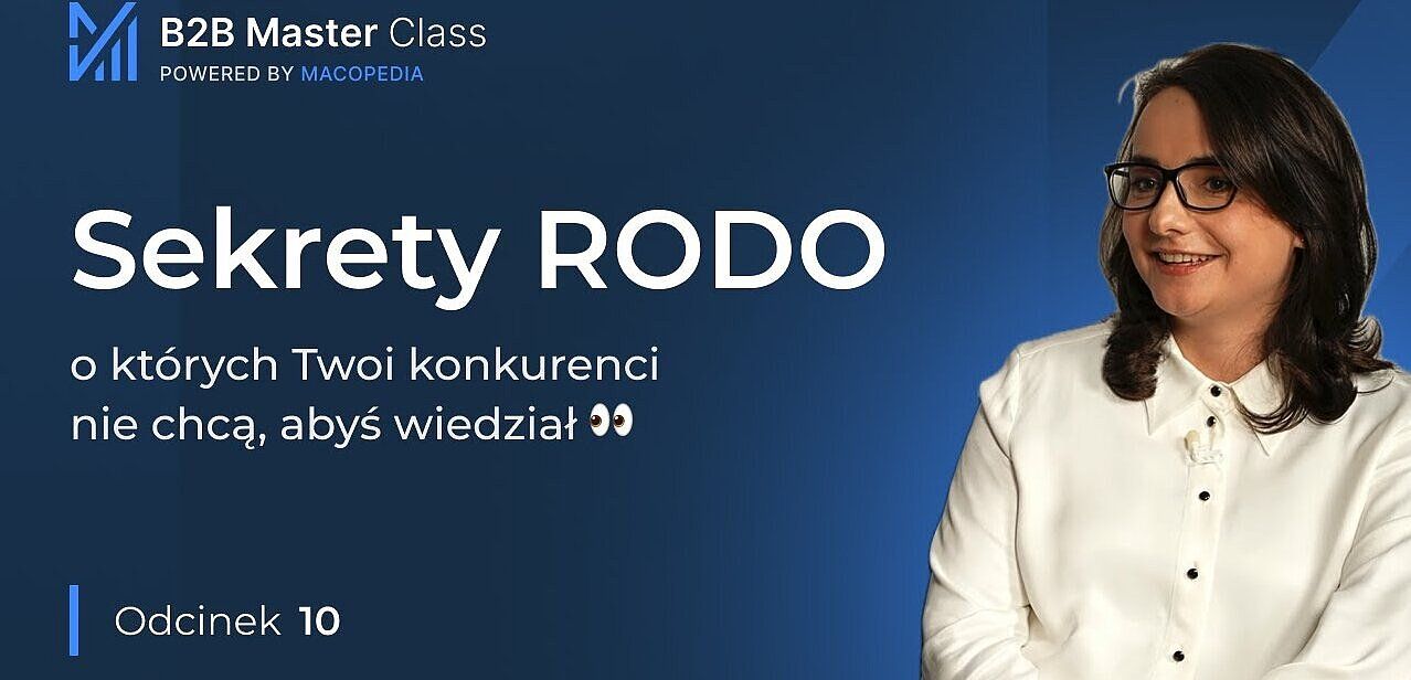 5 min czytania -  W jubileuszowym, 10. odcinku B2B Master Class Tomasz Grzemski rozmawia z Katarzyną Antkowiak, radcą prawnym z kancelarii Antkowiak Gębiak Kaszkowiak. Choć RODO kojarzy się głównie z konsumentami i stertą papierowych klauzul, w świecie B2B jest równie istotne – i często bagatelizowane. Z tego odcinka dowiesz się, dlaczego „segregator z napisem RODO” nie chroni Twojej firmy, jak bezpiecznie projektować platformę sprzedażową zgodnie z zasadą Privacy by Design oraz co zrobić w pierwszych 72 godzinach po wykryciu wycieku danych.