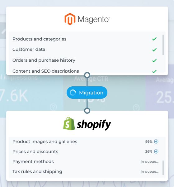 We migrate stores from Magento, WooCommerce, PrestaShop, and other platforms to Shopify and Shopify Plus. Our comprehensive Shopify migration services include products, orders, customer data, and integration with ERP, CRM, and marketing tools.